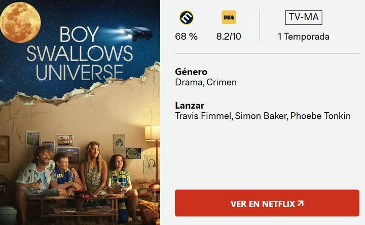 A pesar del nombre, el drama australiano Boy Swallows Universe no trata sobre un horror sobrenatural que está devorando galaxias. Se trata de un niño, Eli Bell (Felix Cameron), cuyo mundo se está desmoronando. La madre de Eli, Frankie (Phoebe Tonkin), es irremediablemente adicta a las drogas y está en la cárcel, dejando a Eli y a su hermano mayor, Gus (Lee Tiger Halley), que lucha contra el mutismo selectivo, para vivir con su padrastro, Lyle Orlik (Travis Fimmel).