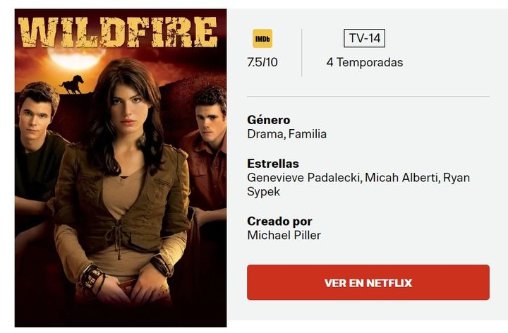 Wildfire fue una serie original de ABC Family en 2005 antes de que el canal pasara a llamarse Freeform. La historia sigue a Kristine “Kris” Furillo-Davis (Genevieve Cortese), una adolescente que acaba de salir de un centro de detención juvenil cuando tiene la oportunidad de reconstruir su vida trabajando en un rancho.