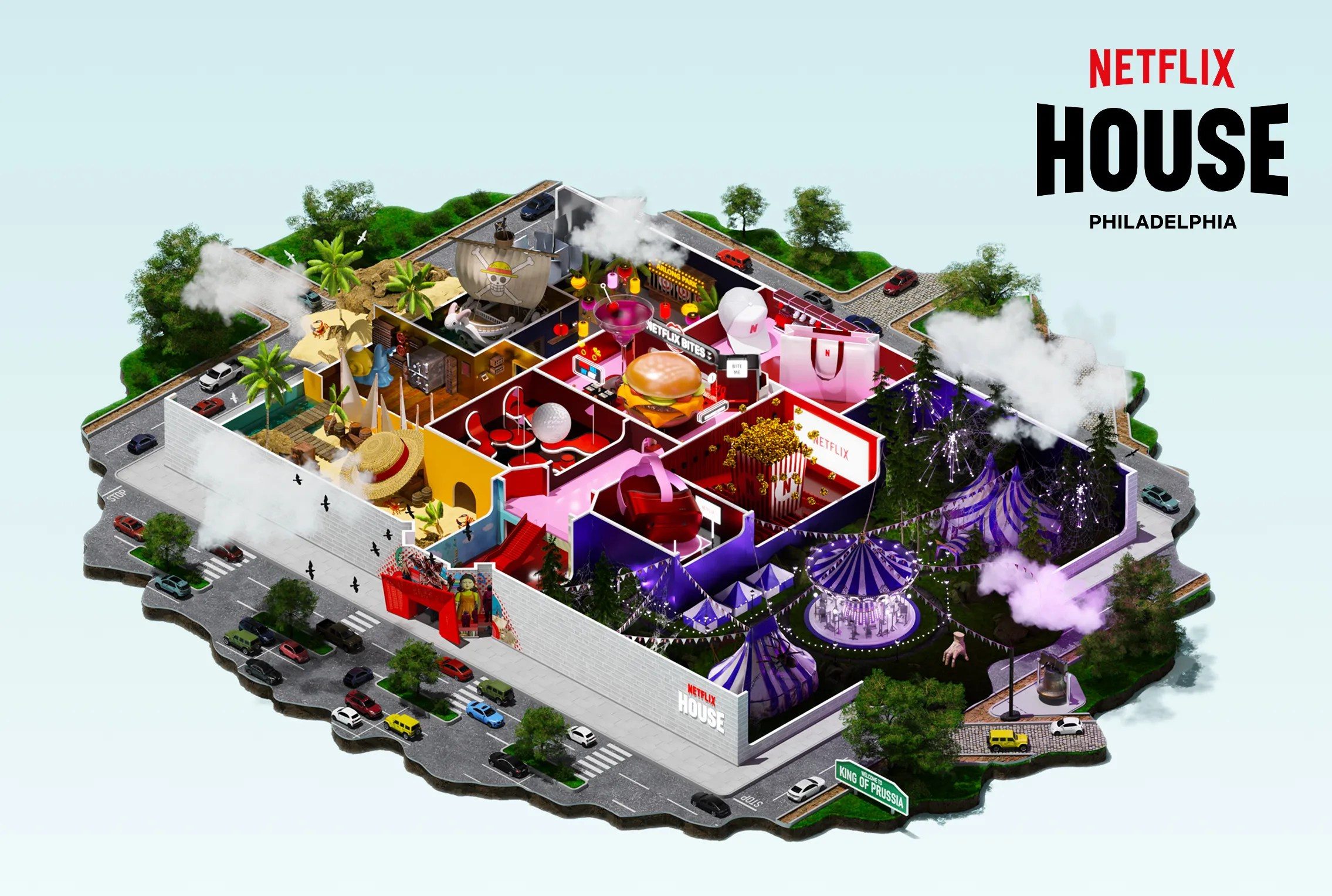 La Casa de Netflix de Filadelfia parece que será la más grande de las dos ubicaciones iniciales con las experiencias Wednesday: Eve of the Outcasts y One Piece: Quest for the Devil Fruit, Netflix Virtuals con juegos de realidad virtual de Sandbox VR, un campo de minigolf de nueve hoyos y el Teatro TUDUM, que mostrará series de Netflix, películas y eventos de fanáticos como trivia en una pantalla grande.
