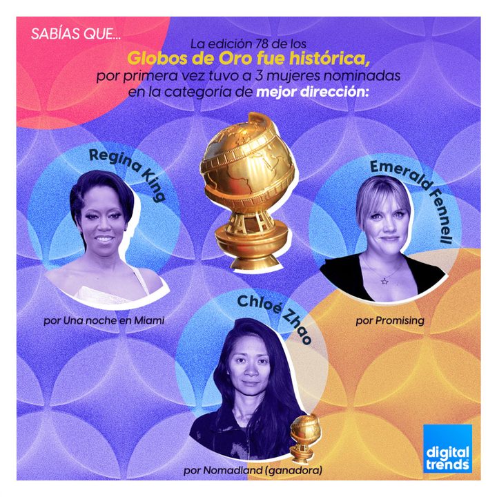 Se trata de una historia ficticia de una noche en la que se reúnen los íconos Muhammad Alí, Malcolm X, Sam Cooke y Jim Brown, para hablar sobre su papel en el movimiento por los derechos civiles y la agitación cultural de la década de los sesenta en Estados Unidos. El filme es dirigido por Regina King, quien hizo historia en la edición 78 de los Globos de Oro. El certamen tuvo por primera vez a tres mujeres nominadas en la categoría de mejor dirección (King por Una noche en Miami, Emerald Fennell por Promising y Chloé Zhao por Nomadland).