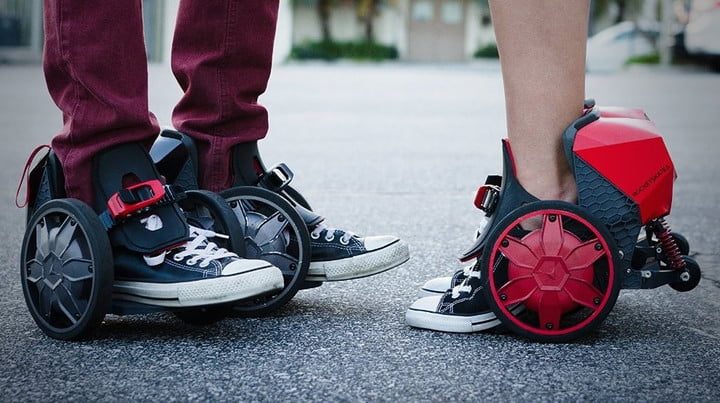 Rocketskates con los patines motorizados más pequeños del mercado. Estas botas cuentan con un peso de soporte de 275 libras, una velocidad máxima de 12 mph y un rango promedio de diez millas.