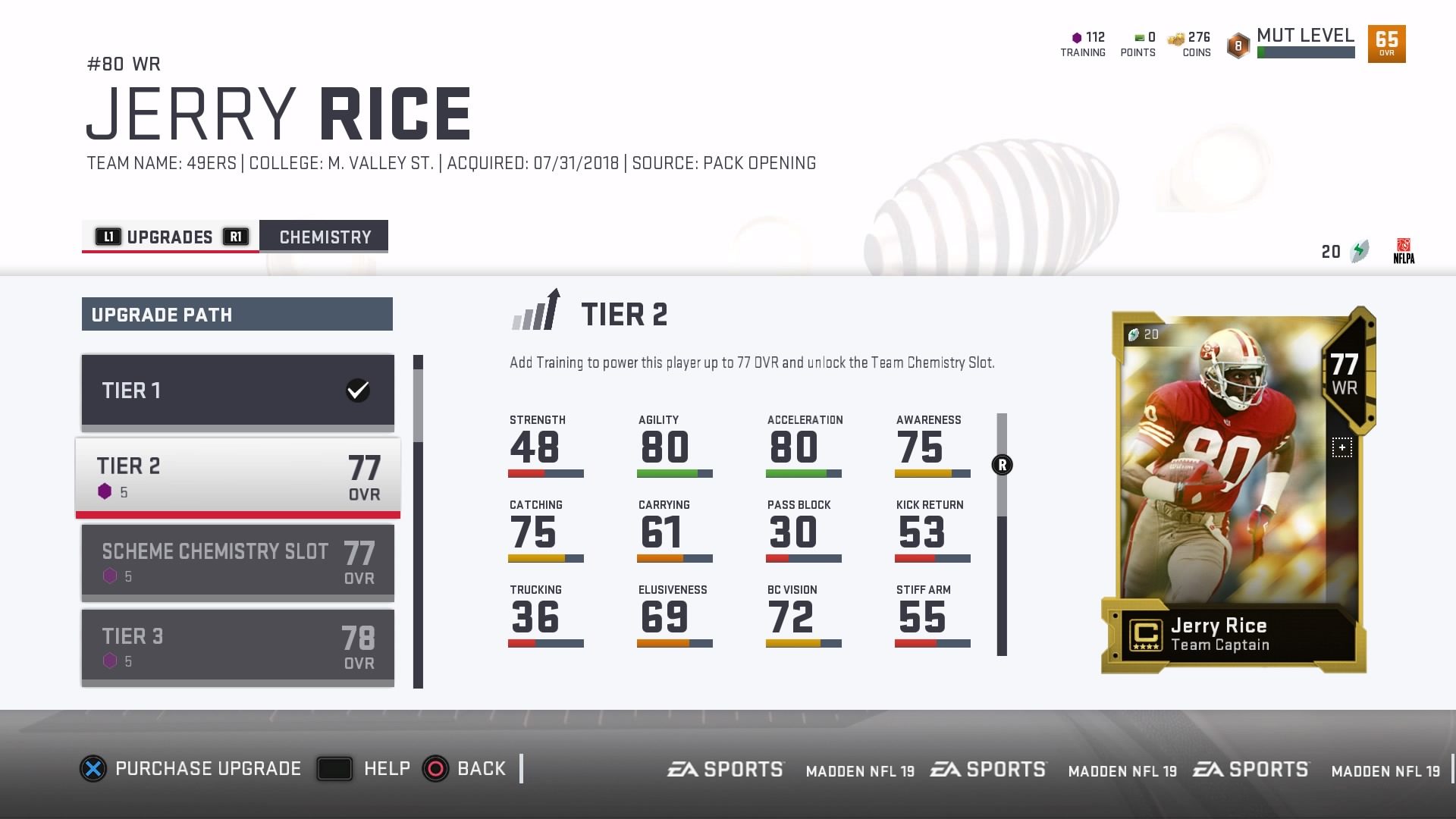 Ahora puedes actualizar un jugador directamente desde su tarjeta, en lugar de buscar en listas largas para buscar las actualizaciones adecuadas. La actualización de los jugadores se realiza casi exclusivamente a través de Training, o entrenamiento, que son puntos que acumulas al vender tarjetas que no necesitas. El manejo de la química de los jugadores también se simplifica, y aún mejor, no encontrarás cartas con funciones preseleccionadas, lo que significa que tendrás más opciones para alinear nuevas tarjetas dentro de tu esquema.