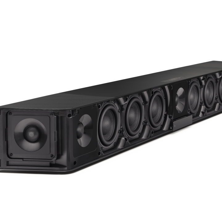 Cuenta con un sonido envolvente 5.1.4 y graves muy profundos y todo ello en un solo dispositivo, sin necesidad de llenar el salón de casa de varios dispositivos.