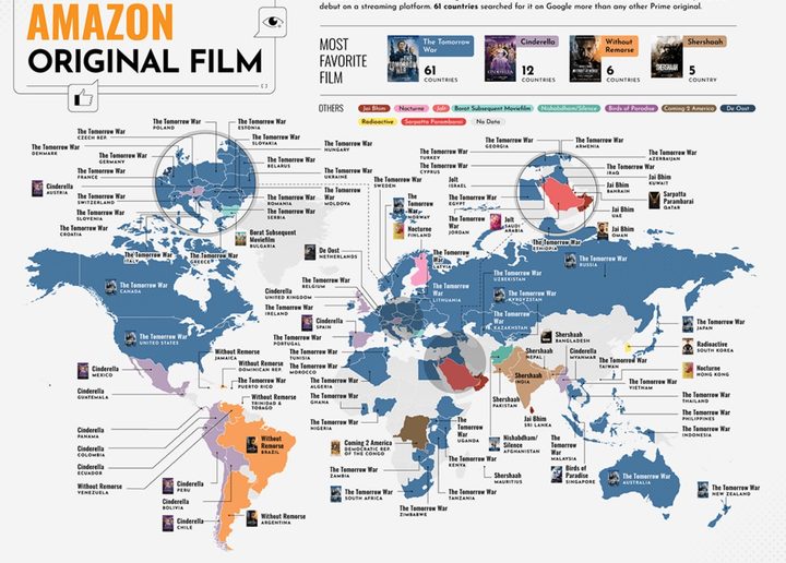 La película original de Amazon de acción única, The Tomorrow War, es la película más buscada en 61 países.