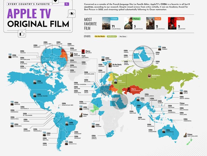 CODA superó a Apple TV +, como la película más buscada en 71 países.