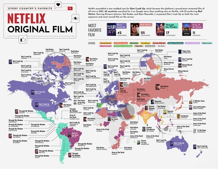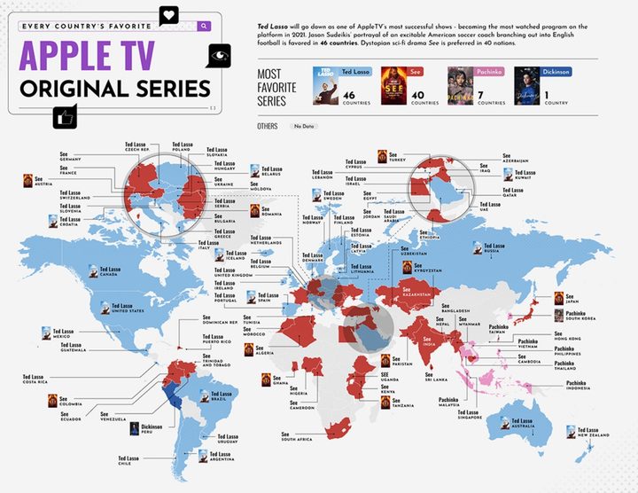 “Para crear estas tablas, primero reunimos listas de todos los originales de Amazon Prime, Apple TV, Disney + y Netflix de Wikipedia, excluyendo los próximos programas y películas, así como los reality shows, documentales, stand-ups y podcasts. También se descontaron las coproducciones y continuaciones. Luego tradujimos títulos a varios idiomas usando enlaces interlingüísticos de Wikipedia. Finalmente, utilizamos la herramienta Ahrefs para aislar la película con el mayor número de búsquedas mensuales en cada país. Eliminamos las entradas con menos de 1,000 búsquedas mensuales”.