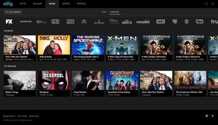 Sling TV también tiene ventaja cuando se trata de encontrar contenido on-demand. En realidad, ambos servicios te permiten buscar programas a pedido, pero Sling TV te permite ver cada canal presentado en dos listas: Transmisión en vivo (streaming) y a pedido, lo que es realmente útil, si ya sabes que el programa que buscas está en FX, por ejemplo.