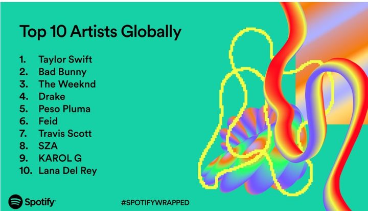 - Tus mensajes de artista significan que podrás escuchar a uno de tus mejores artistas dentro de tu Wrapped personalizado. Si te quedas con ganas de más, visita elfeed de Wrapped paraver los mensajes de video de miles de artistas, incluidos Taylor Swift, Bad Bunny, Peso Pluma, Dolly Parton, NewJeans, SZA y Jung Kook.