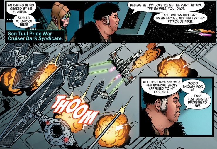 En este cómic aparece un personaje muy similar a Mulholland y su versión humana de Jabba the Hutt. No tiene nombre, pero según el sitio CBR es básicamente un símil de Jabba: un criminal perteneciente al sindicato rival llamado Son-Tuul.