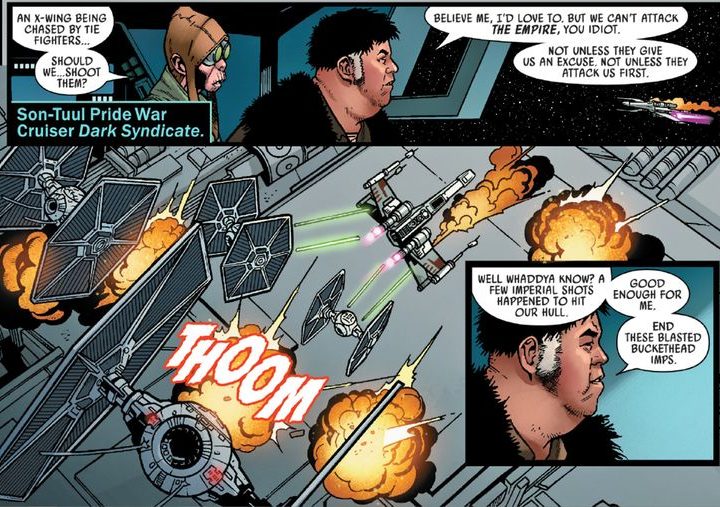 En este cómic aparece un personaje muy similar a Mulholland y su versión humana de Jabba the Hutt. No tiene nombre, pero según el sitio CBR es básicamente un símil de Jabba: un criminal perteneciente al sindicato rival llamado Son-Tuul.