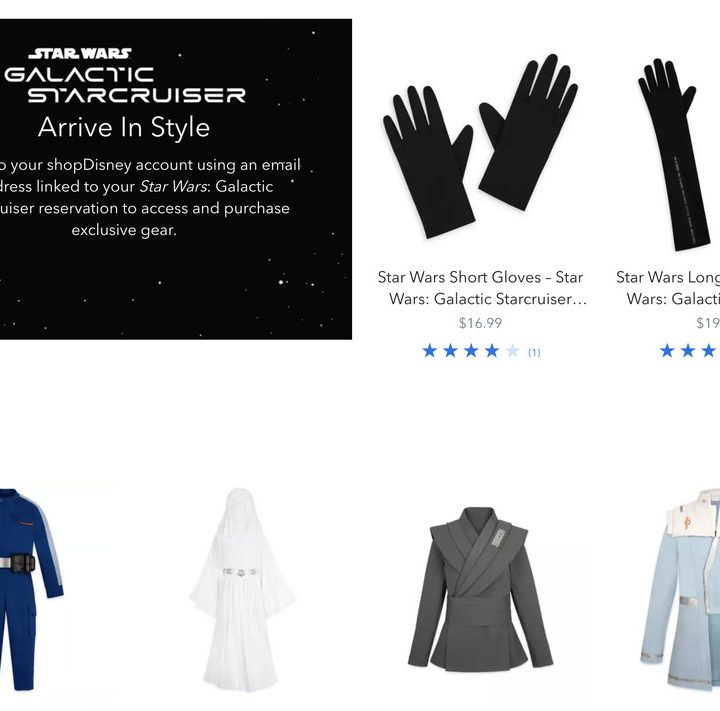 En ShopDisney.com, el vestuario y el equipo seleccionados del Galactic Starcruiser solo están disponibles para su compra con el uso de un correo electrónico vinculado a una reserva a bordo de la nave.