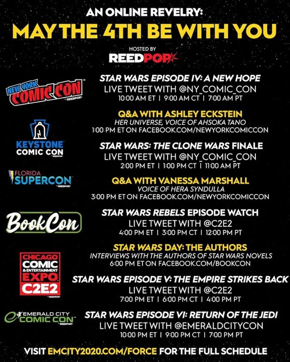 Una noticia de última hora se supo este miércoles 29 de abril: en el contexto de Star Wars Day, que se festeja el 4 y 5 de mayo, ReedPop presentará «An Online Revelry», una reunión digital para los fanáticos de Star Wars que desean unirse para celebrar su querida franquicia.
