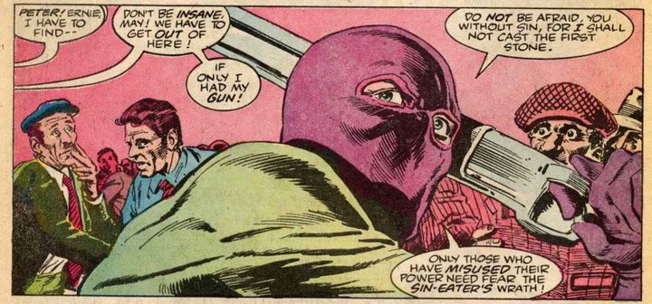 Los fanáticos han sugerido que las dos descripciones se relacionan con una versión en vivo del villano de Marvel Comics, Stanley Carter, más conocido como «Sin-Eater”, que estuvo expuesto a una droga experimental que lo volvió loco y lo incitó a participar en una cruzada para castigar, a menudo letalmente, a cualquiera a quien considere pecaminoso. El personaje fue un enemigo recurrente tanto de Daredevil como de Spider-Man a lo largo de los años.