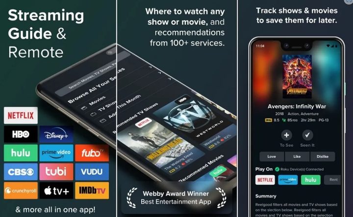 Reelgood incluye contenidos de más de 150 servicios, como Netflix, Hulu, HBO, Disney , Prime Video y otros servicios gratuitos, por los que puede navegar, ver o buscar sin restricciones. Esta aplicación está disponible en dispositivos iOS y Android.