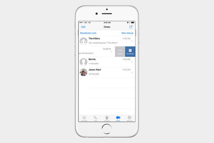Si hablas mucho con alguna persona, puedes guardar los mensajes más importantes, y poder accederlos después. Para hacer eso, desliza el dedo hacia la izquierda en cualquier chat y elige la opción Archivar. Para ver tus chats archivados, simplemente desliza el dedo hacia abajo en la pestaña de chats. Una vez estés allí, verás la opción Chats Archivados sobre la barra de búsquedas.