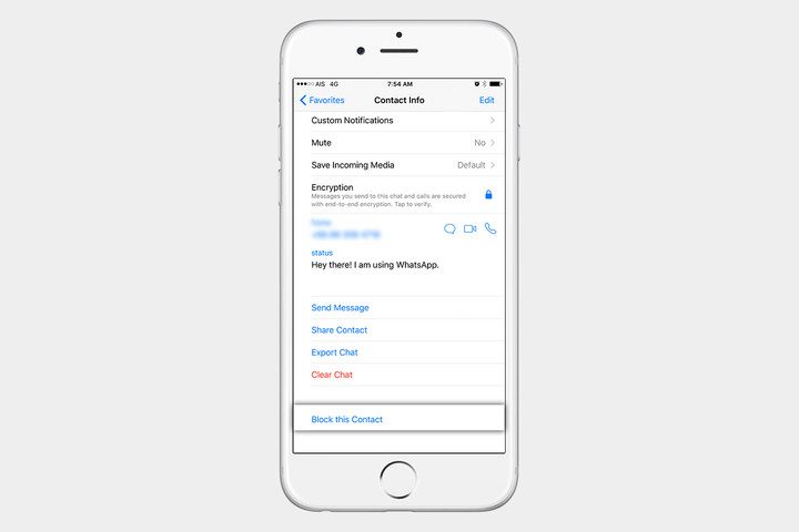 Bloquear un contacto parece ser un misterio total al principio, pero no es tan difícil como crees que es. Para hacerlo, pulsa el nombre del contacto en la parte superior del chat. Esto abrirá la información de contacto. Una vez estés allí, pulsa la opción Bloquear este Contacto, que está al fondo del menú. Puedes también bloquear a alguien en tu grupo de contactos al dirigirte a Configuración> Cuenta >Privacidad> Bloqueados y añadir el contacto en cuestión