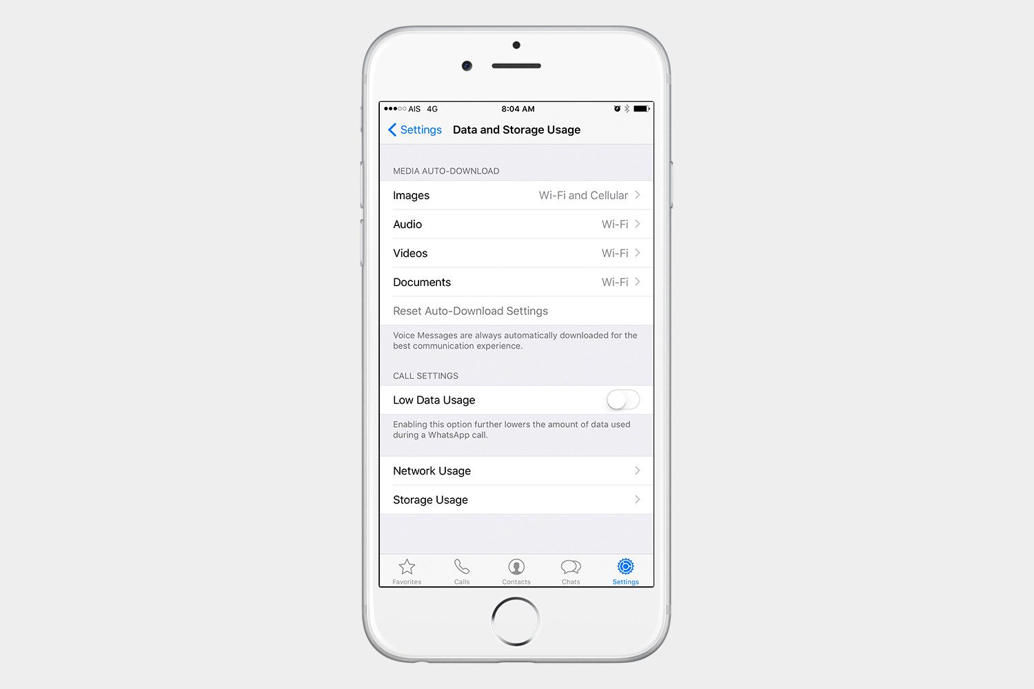 Si estás utilizando muchos datos móviles, puedes controlar el uso de datos de esta app, al dirigirte a Configuración> Datos y Almacenamiento. Aquí, puedes elegir si quieres que los documentos, fotos y vides sean descargados por Wi-Fi, por la red de tu operador o por cualquiera. Si utilizas WhatsApp principalmente para hacer llamadas, puedes prender la opción Disminuir Uso de Datos para minimizar la cantidad de datos que utilizas durante las llamadas. Puedes también monitorear el uso de tu red y almacenamiento del usuario para ver cuál de tus contactos envía más datos.