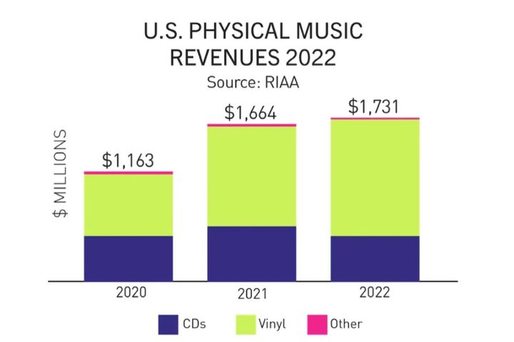 Esto porque según el informe anual de ingresos de la Recording Industry Association of America (RIAA), los discos de vinilo superaron a los CD en los Estados Unidos el año pasado por primera vez desde 1987, vendiendo 41 millones de unidades contra 33 millones para CD.