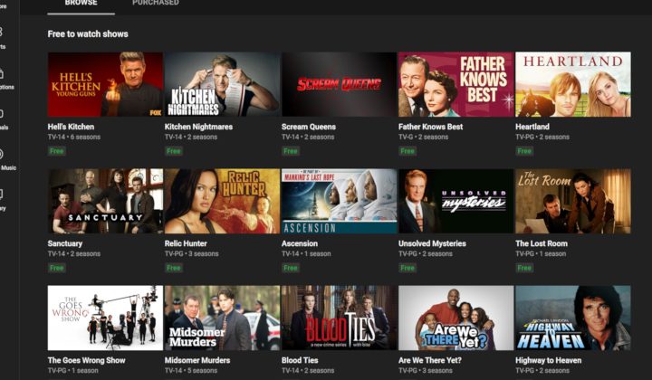 El servicio comenzó a añadir miles de episodios de programas de TV completamente gratis (pero con publicidad) en EE.UU. El contenido es el que habitualmente encontraríamos en la televisión pública y canales tradicionales con anuncios.