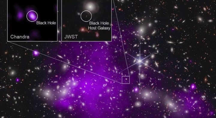 En la galaxia de UHZ1, Akos Bogdan, del Centro Harvard-Smithsonian de Astrofísica, y su equipo de investigación, descubrió con la visión de rayos X del telescopio Chandra, un agujero negro supermasivo en crecimiento, en la dirección del cúmulo de galaxias Abell 2744.