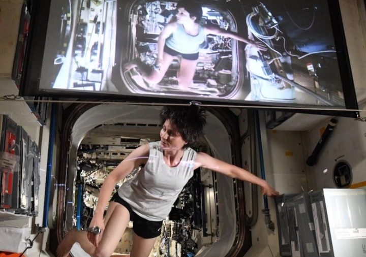 Una imagen (abajo) compartida por Cristoforetti muestra al astronauta de la Agencia Espacial Europea haciendo una pose que replica perfectamente un momento en la exitosa película donde la Dra. Stone, interpretada por Sandra Bullock, se abre paso por la estación. Cristoforetti incluso lo configuró para que la escena de la película se mostrara en una pantalla justo encima de ella.