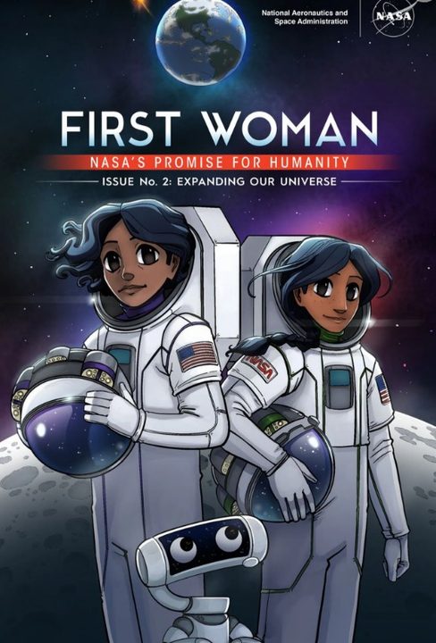 El cómic La primera mujer es una serie que cuenta la historia de la astronauta ficticia Callie Rodríguez, que junto a un equipo de la NASA trabaja explorando lo desconocido y realizando tareas científicas durante una misión en la Luna.
