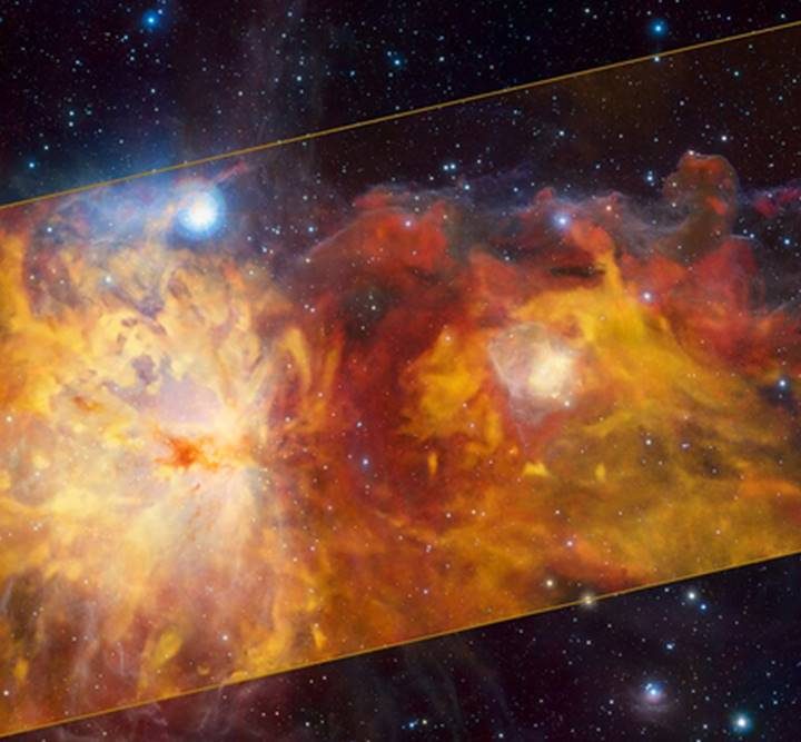 La constelación de Orión es conocida por ser una región astronómica que alberga nubes moleculares gigantes cercanas al Sol, además de objetos gigantes compuestos de hidrógeno donde se forman nuevas estrellas e incluso planetas.