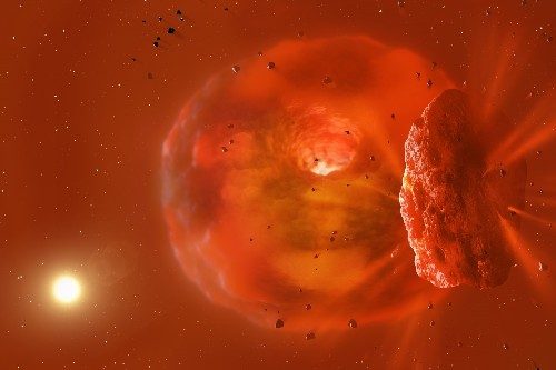 Los investigadores concluyeron que la explicación más probable es que dos exoplanetas gigantes de hielo chocaron, produciendo el resplandor infrarrojo detectado por la misión NEOWISE de la NASA, que utiliza un telescopio espacial para buscar asteroides y cometas.