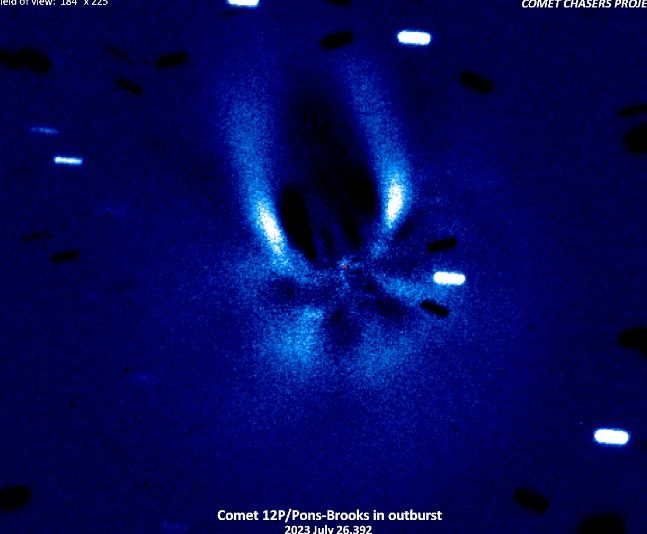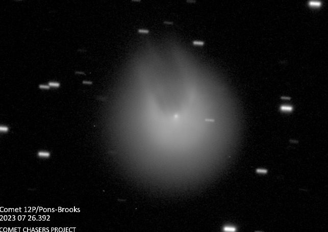 El cometa 12P/Pons-Brooks era como cualquier otro de los que navega por la galaxia, sin embargo, cerca del 25 de julio investigadores de Comet Chasers, un equipo dirigido por Helen Usher de Cardiff / The Open Universities, descubrió que 12P había explotado en algún sector de su superficie.
