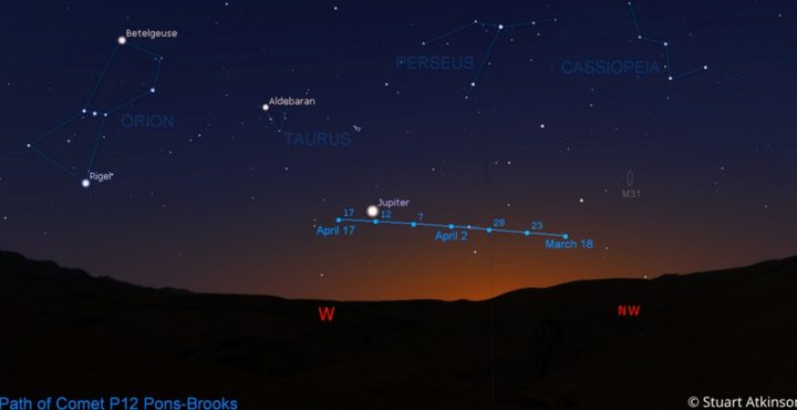 El Dr. Massey dijo que los observadores de estrellas deberían mirar hacia el oeste-noroeste después de la puesta del sol para echar un vistazo a Pons-Brooks, que completa su órbita una vez cada 71,3 años y, por lo tanto, no volverá a ser visible hasta 2095.