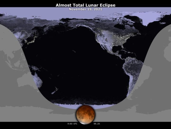 El eclipse lunar será visible desde varias partes del mundo como Nueva Zelanda, Japón, Estados Unidos, el este de Australia, el oeste de América del Sur y gran parte de Rusia, según lo que publica la NASA en su sitio web.