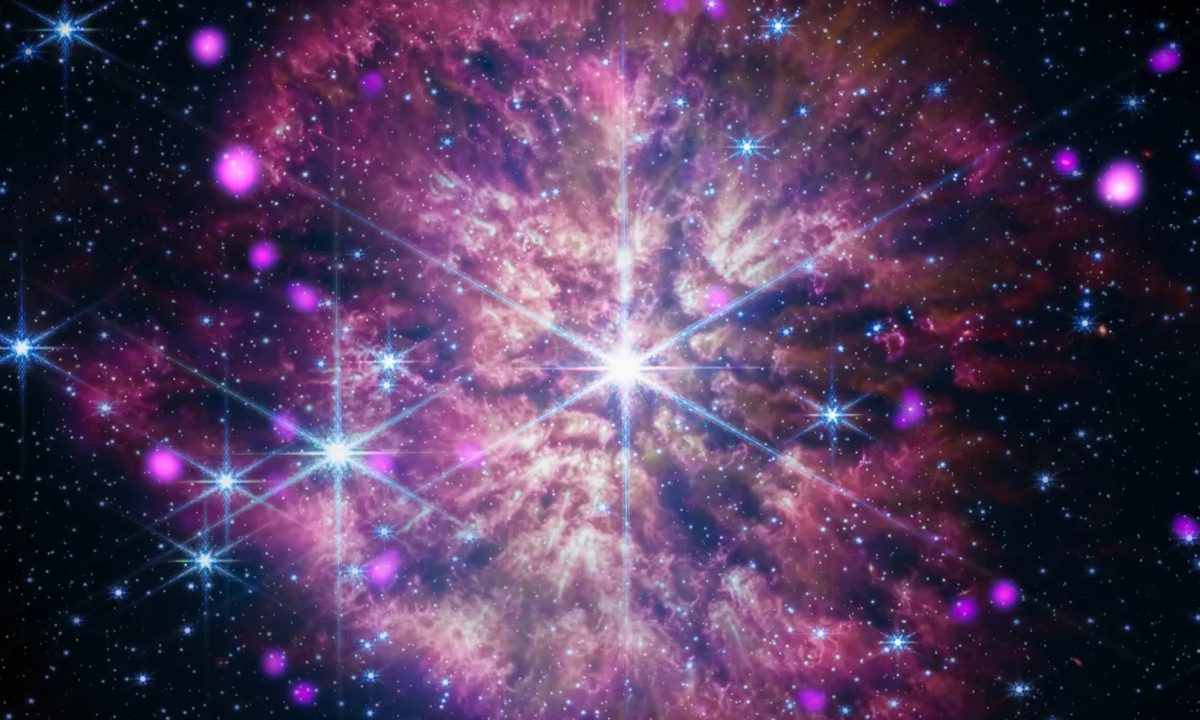La primera es WR 124, un tipo de estrella llamada Wolf-Rayet que es un posible precursor de un agujero negro. A medida que estas estrellas viejas y masivas llegan al final de sus vidas, comienzan a lanzar capas de gas al espacio, creando elaboradas nubes a su alrededor. Eventualmente, cuando haya arrojado suficiente de su material, esta estrella puede colapsar y convertirse en un nuevo agujero negro.