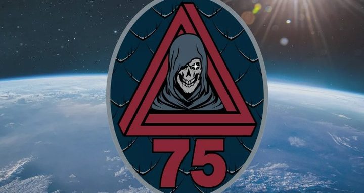 Un logo parecido al de Skeletor de He-Man o de Los Piratas del Caribe, pero con una capucha como “La Muerte”, configuran la imagen del Escuadrón 75 de la Fuerza Espacial de Estados Unidos, creada para poder neutralizar a satélites extranjeros invasores.