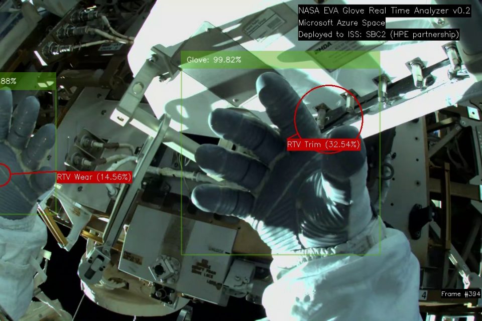 Microsoft ya probó este nuevo monitor de guantes a bordo con varios implementos que usan los astronautas durante las caminatas. Luego fotografiaron y etiquetaron tipos específicos de daños que podían sufrir los guantes, lo que fue utilizado para entrenar su sistema de IA basado en la nube de Microsoft Azure.