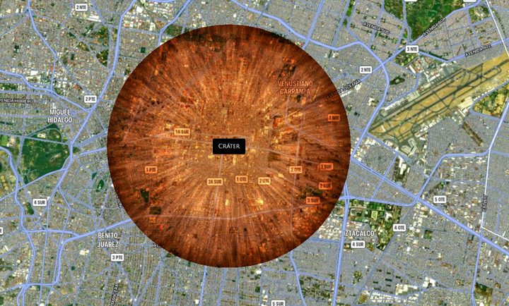 Te has preguntado por un momento cuando miras al cielo, ¿qué pasaría si un asteroide de hierro de 500 metros de diámetro cayera a una velocidad de 17 kilómetros por hora con un ángulo de impacto de 45 grados sobre Ciudad de México?