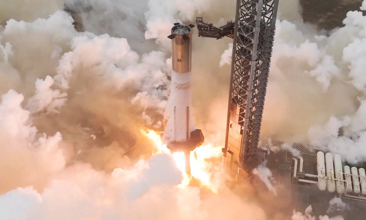 El Super Heavy de la primera etapa encendió sus motores Raptor durante unos 10 segundos en una impresionante exhibición de potencia de cohete. Puedes verlo en el siguiente vídeo: