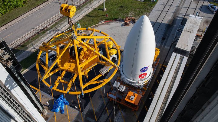 La NASA informó sobre el proceso que “comenzó cuando un polipasto de 60 toneladas en el techo de la Instalación de integración vertical en Space Launch Complex 41 levantó el cono de la nariz, también conocido como carenado de carga útil, 129 pies (39 metros) hasta la parte superior del cohete de espera. Allí, los ingenieros hicieron las conexiones físicas y eléctricas que permanecerán entre el propulsor y la nave espacial hasta aproximadamente 50 a 60 minutos después del lanzamiento, cuando los dos están separados pirotécnicamente y el rover Perseverance esté en camino”.