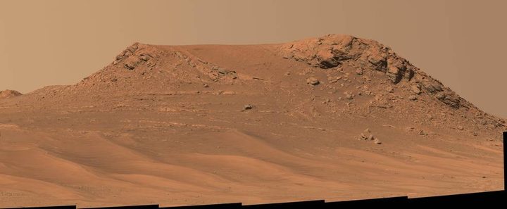 Un segundo mosaico capturado por Perseverance muestra una ubicación separada que es parte de la unidad curvilínea y aproximadamente un cuarto de milla (450 metros) de Skrinkle Haven. “Pinestand” es una colina aislada que contiene capas sedimentarias que se curvan hacia el cielo, algunas tan altas como 66 pies (20 metros). Los científicos creen que estas capas altas también pueden haber sido formadas por un poderoso río, aunque también están explorando otras explicaciones.