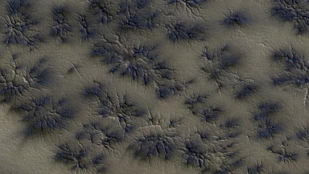 Por supuesto, no son arañas, pero su peculiar forma sobre la superficie marciana motivó a que fueran llamadas así: las arañas de Marte.
