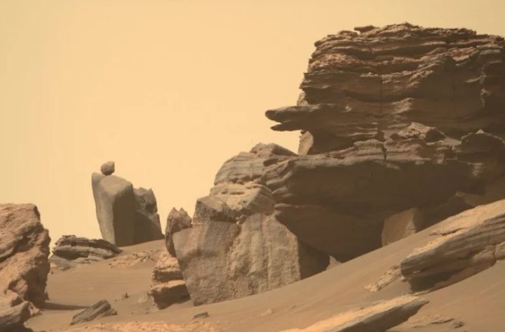 Una imagen particularmente llamativa (arriba) parece mostrar una más audaz encaramada sobre una roca más grande, mientras que otras muestran con gran detalle varias formaciones rocosas en capas.