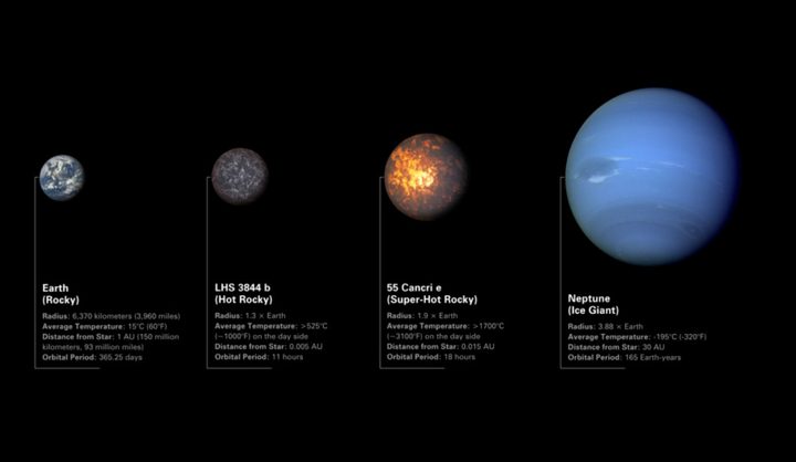 55 Cancri e está a solo 1.5 millones de millas de su sol (estamos a 93 millones de millas del nuestro) y, por lo tanto, presenta temperaturas superficiales muy por encima del punto de fusión de los minerales típicos que forman rocas. Significa que es probable que partes de su superficie estén cubiertas de océanos de lava.