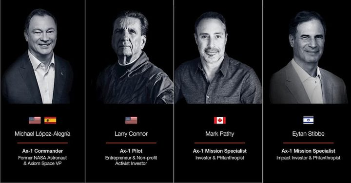 De acuerdo con Axiom Space, la tripulación estará compuesta por cuatro hombres: tres turistas espaciales y un exastronauta de la NASA, que será el comandante.