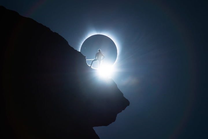 Cuando planees la composición de tus fotografías, no temas en ser creativo. No todos vamos a crear la impactante imagen viral que Ted Hesser hizo del eclipse de 2017, pero su historia es un buen ejemplo de por qué debes planificar bien antes lo que harás. En lugar de simplemente ponerte a disparar al sol, prueba encuadres dentro de tu entorno. Dispara a través de un edificio o puente, captura la silueta de otros observadores, y no temas disparar desde un ángulo más bajo o más alto que todos los demás.