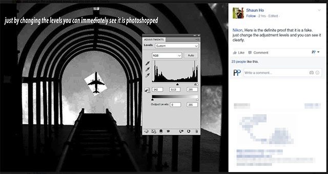 Muchos seguidores en Facebook señalaron que con un simple ajuste a la exposición de la fotografía, revela que la imagen es falsa.