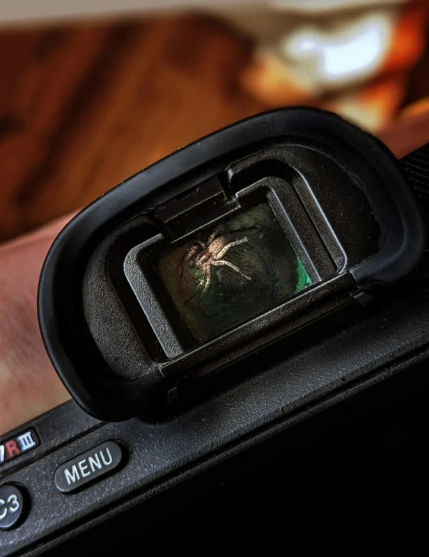 Sin embargo, hace algunos días empezó a notar que algo no andaba bien, ya que la cámara no le permitía enfocar de manera normal. Robison revisó el estado de todos los accesorios del aparato e incluso recurrió a la pantalla LCD para verificar el enfoque. Fue ahí cuando se dio cuenta de que el visor estaba bloqueado, ya que había una pequeña araña que vivía en su interior.
