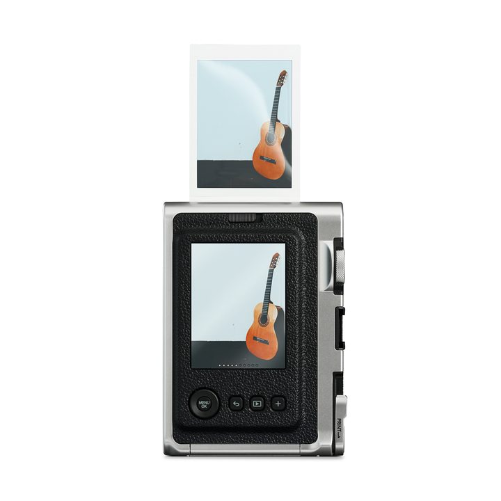 La Mini Evo es, según Fujifilm, el modelo de tope de línea de las Instax. Incluye una pantalla LCD de 3 pulgadas, 10 efectos de lente y 10 efectos de rollo fotográfico, que se pueden seleccionar y combinar mediante un sistema tipo rueda como las antiguas cámaras análogas, cuyas funcionalidades se controlaban de manera mecánica.