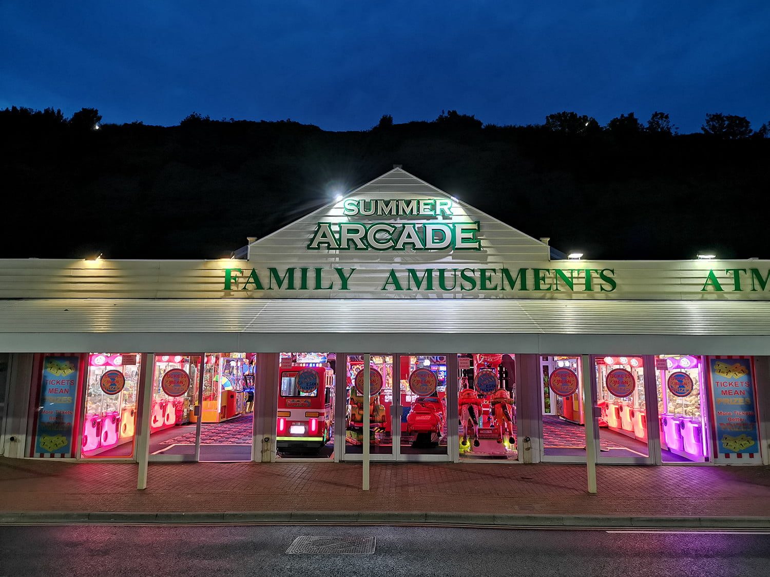 Eran alrededor de las 22.00 horas, estaba oscuro, con la única iluminación procedente de los faroles de las calles y del interior de la propia sala de juegos. Estas son condiciones difíciles, y la falta de un modo nocturno en el Xperia 10 Plus mostró cómo una cámara normal capturaría la escena. El resultado está desequilibrado y no es una foto que quieras conservar. Las tres restantes son muy difíciles de elegir, sus respectivos modos nocturnos capturan grandes fotos. Sin embargo, es la imagen del One Vision la que se lleva la victoria, debido al blanco del edificio y al balance de color. La imagen del Pixel 3a es más nítida en el interior de la sala, pero la atmósfera general es menos atractiva que la de One Vision. La del Honor 20 está a caballo entre las dos.