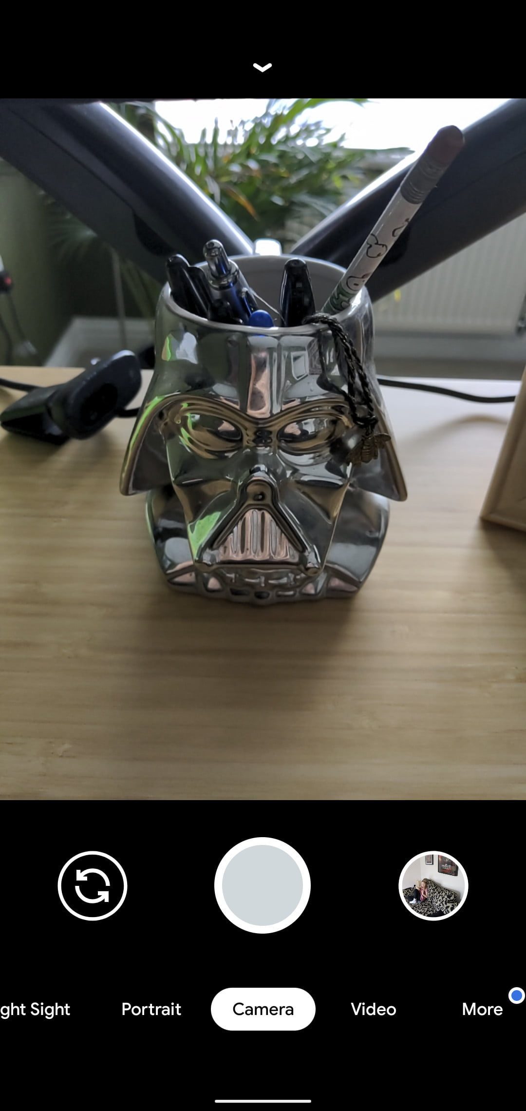 La aplicación es muy sencilla. Verás los modos principales en la parte inferior y puedes simplemente deslizar con el dedo para navegar entre ellos. Sobre eso hay un botón disparador (también puedes tomar una foto presionando los botones de volumen cuando la aplicación esté abierta). Puedes tocar el círculo con dos flechas que se encuentra a la izquierda para alternar entre la cámara frontal y la posterior. Del otro lado hay una vista previa de la última foto que capturaste; tocarla te llevará a la aplicación de Fotos.