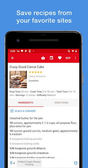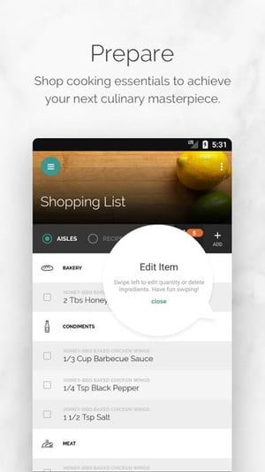Yummly es una aplicación general para compartir alimentos y preparación que ofrece muchas fotos nítidas, además de un sistema de clasificación que te ayuda a encontrar las recetas más populares (o al menos, las más comentadas) online. Si tienes tu rutina de comida más o menos elaborada, pero necesitas ayuda para encontrar las recetas correctas, Yummly es la aplicación que necesitas. Te sugerimos especialmente la versión Yummly Recipes and Shopping List para ayudarte a planificar tus comidas.