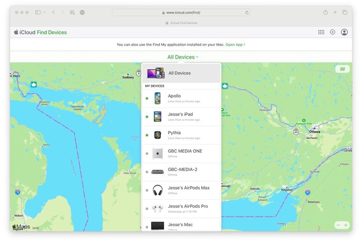 - Pide que seleccionen Todos los dispositivos en la parte superior de la pantalla, encima del mapa.